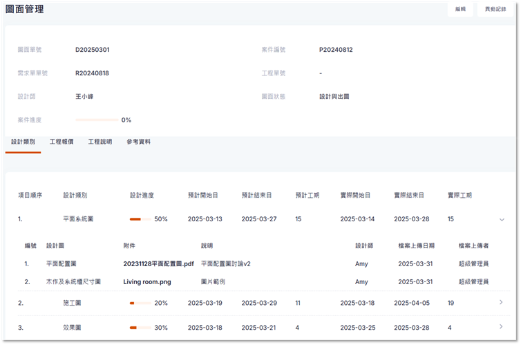 讓設計師、業主與工務能線上瀏覽,隨時用手機、平板或電腦都可以查閱,解決各種溝通與資訊傳遞上的問題。