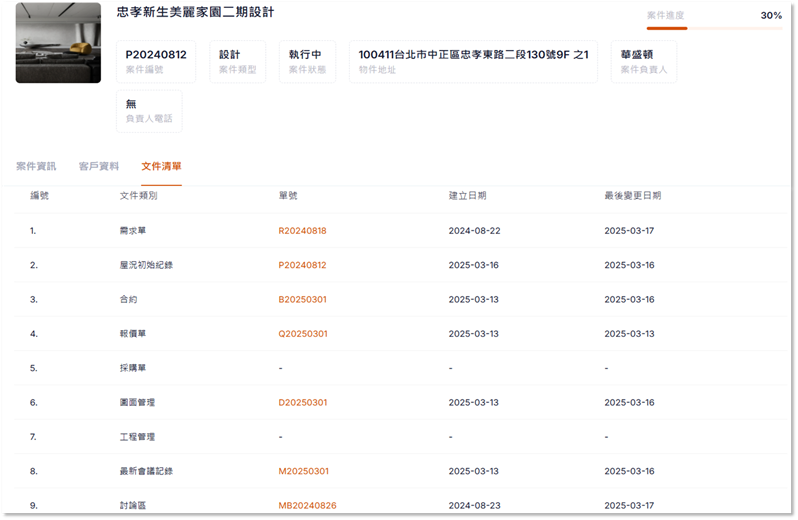 - 設計與裝修途中的「追加減」是正常且經常發生的事,透明溝通是最好的保險,變更的流程應該具備三個基本要素:原始需求或規格文件、變更需求(會議記錄確認)、變更報價與確認(追加減)。這樣才能完整追蹤與消除所有模糊空間,避免糾紛。GoBridge功能,如上圖所示的案件文件清單中,可以找到原來需求與報價單、設計圖面、會議記錄與確認,並且可以啟動報價的追加減流程,如下圖所示,進行最後的確認動作。